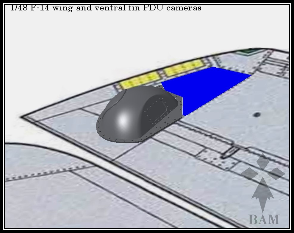 Detailed PDU cameras for the Tamiya F-14 Tomcat kits. Vinyl guides provided for accurate positionning (in blue on the attached pictures)