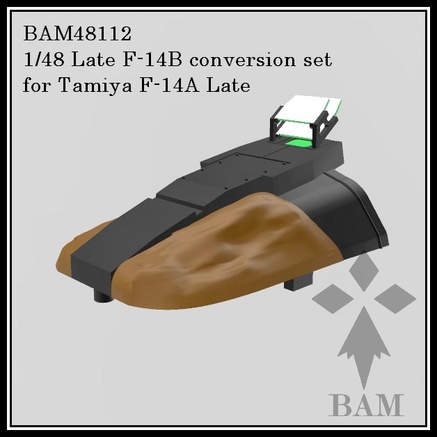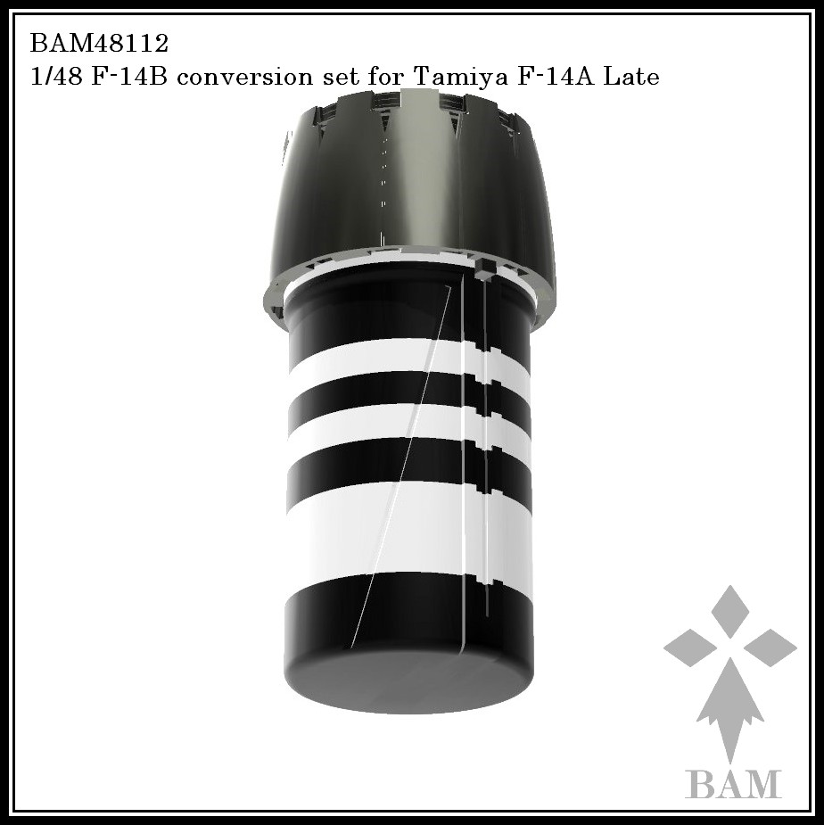 All you need to convert the Tamiya F-14A Late kit (61122) into an F-14B with SparrowHawk HUD: Front coaming with HUD and GE F110-400 exhausts and engine faces. The exhaust pipes are segmented to make painting the dark grey/white rings easy.